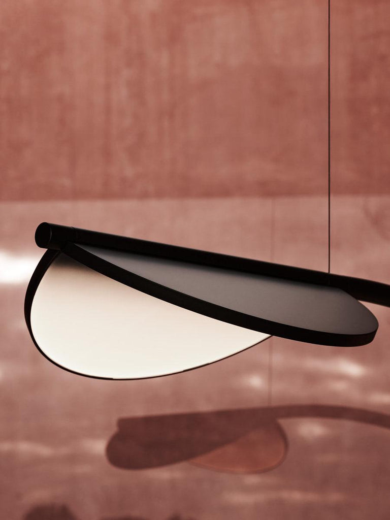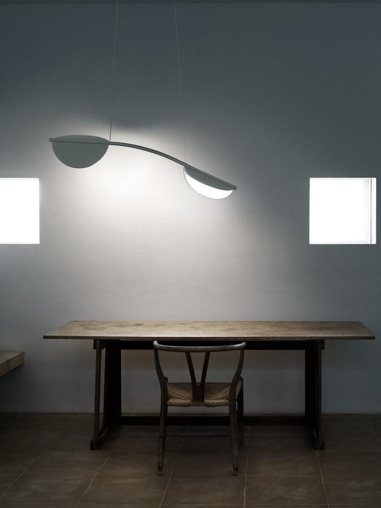 Almendra Arc Suspension Light is a stunning collection with tubular structure and integrated edge lighting technology.Each illuminated leaf can rotate in 60 degrees steps to change the configuration and alter the lighting mood.
