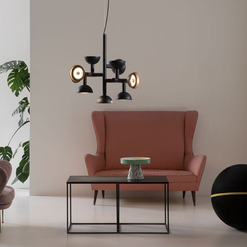 The Karman Sibilla Light with its structure colours in Matt Black with 9 lighting hubs is a creative geometric masterpiece. it emits lights in all directions and changes in look, based on the direction from where you view it.